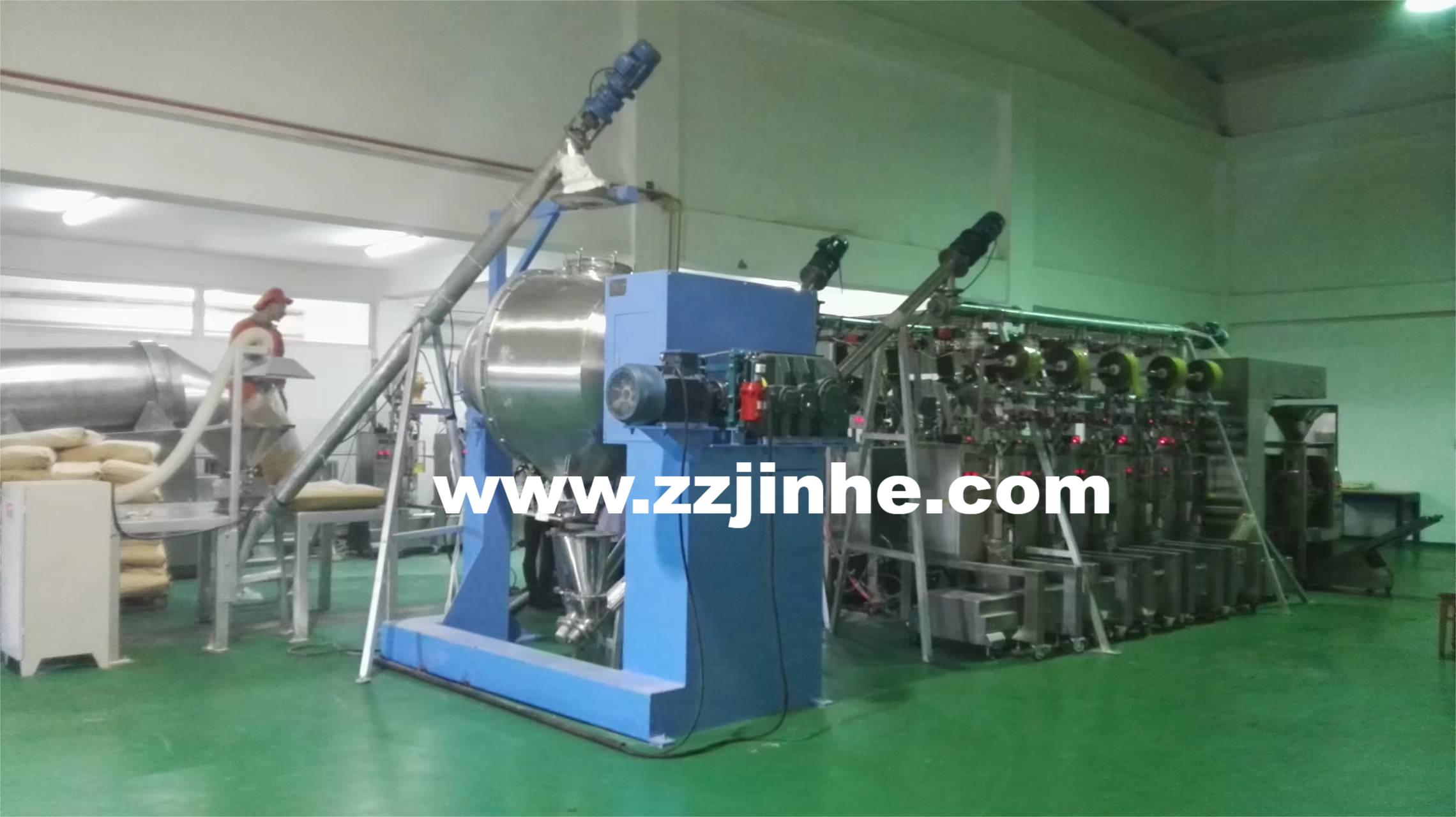 JHF-2 SS304真空送料機由JHX1500混合機給10臺全自動包裝機上料。