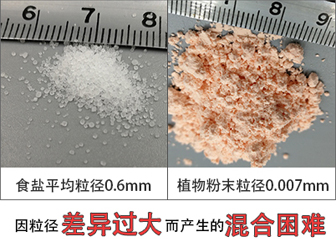 2、粒徑特別大或粒徑特別小(大顆粒粉末或細微粉末)也會造成混合困難。