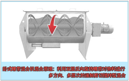 下圖表示臥式螺帶混合機(jī)的混合原理:
