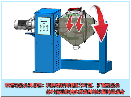 下圖表示雙運(yùn)動(dòng)?混合機(jī)的混合原理: