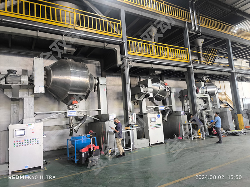 湖北某砂漿添加劑JHX3000經(jīng)典雙運動混合機(jī)自動化生產(chǎn)線